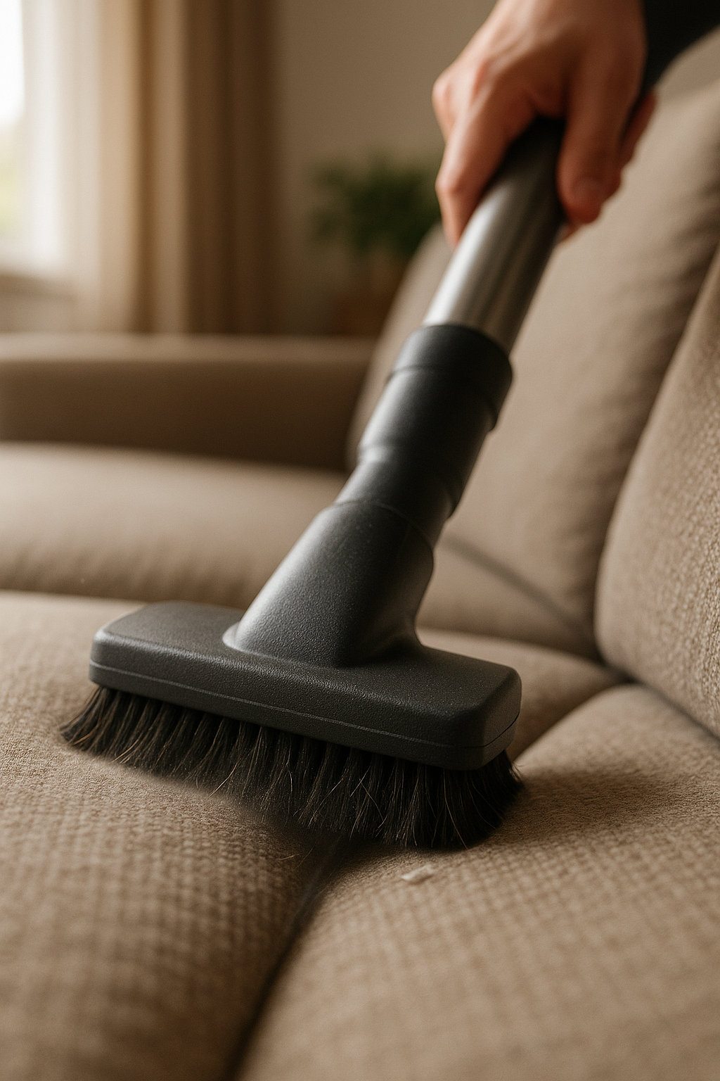 먼지·털 흡입 → 탈취/얼룩 처리 → 충분 건조·복원. 재질별 요령과 응급 얼룩표까지 정리했습니다.