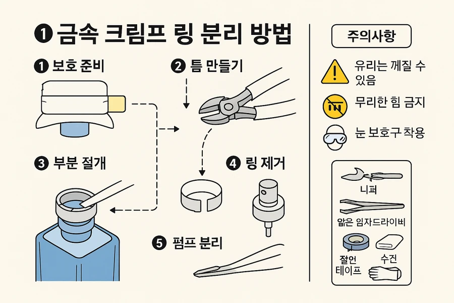 | 크림프(금속링) 아토마이저 | 목 부분 금속 링 | 니퍼·얇은 드라이버로 링 벌림 | 높음/유리파손 주의 |